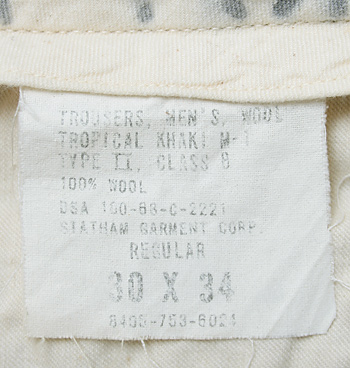 ■制式名称:TORUSERS, MEN'S, WOOL TROPICAL KHAKI M-1 TYPE II, CLASS 8
