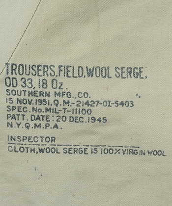 ■制式名称:TROUSERS, FIELD, WOOL, SERGE, OD 33, 18 Oz.