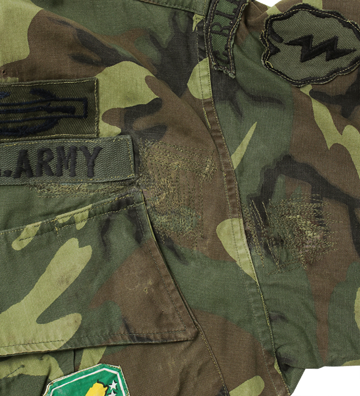 注)NAM戦初期にはファテイーグジャケット製造後、現地(ベトナム)に送られ、ベトナムの業者により納入されたベトナム製パッチ(ローカルパッチ)を付けられたケースが多かった。
