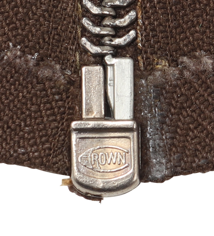 ご案内は軍に納入された後、一度も使用されずに放出に至った実物・未使用品であり、CROWN 大戦初期シェブロン型ジッパーとしてはこれ以上のコンディションの物は望むべくもありませんが、製造されてから80年を経過する物達であり、使用に差し支え無い範囲内においての金属部分の変色、些細な錆、又、テープ部分も些細な保管汚れ、経年変化がある事、予めのご了承お願いいたします。