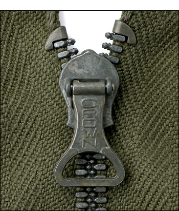 ご案内は軍に納入された後、一度も使用されずに放出に至った実物・未使用品であり、CROWN 2ndモデル初期型Zipperとしてはこれ以上のコンディションの物は望むべくもありませんが、やはり製造されてから60年以上経過する実物ジッパーであり、使用に差し支え無い範囲においての金属部分の変色、僅かな錆、テープ部における保管汚れ、変色、製造時よりのテープの織りキズ等があること、予めのご了承お願いいたします。