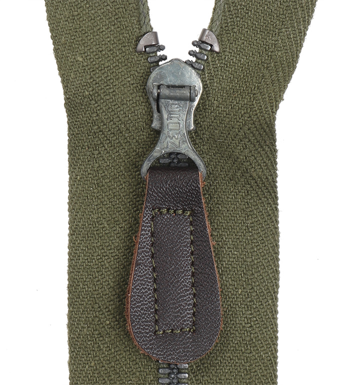 CROWN 2ndモデル(初期型) #5, オープンジッパー/オリーブ色/スプリング スライダー/革タグ付き/60cm/実物・未使用