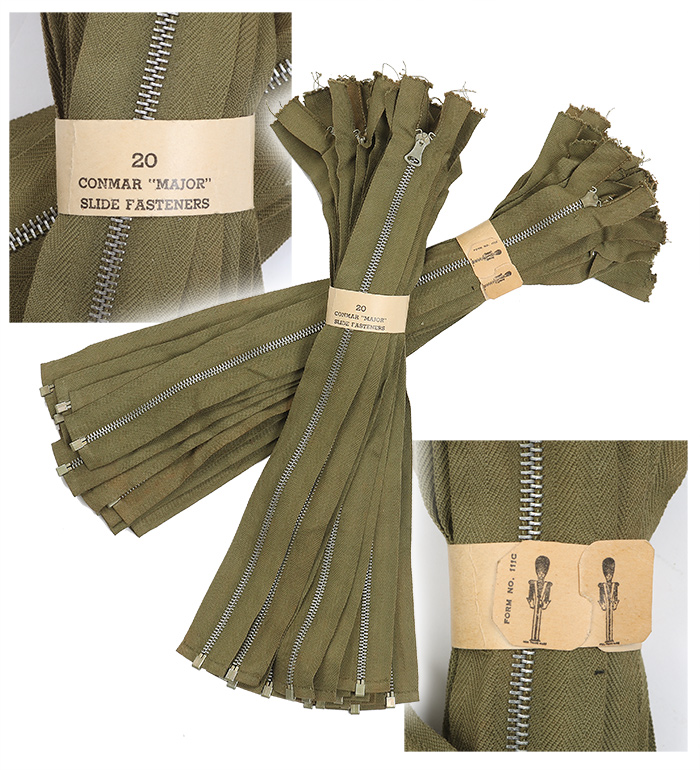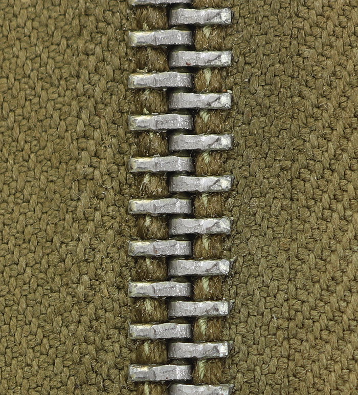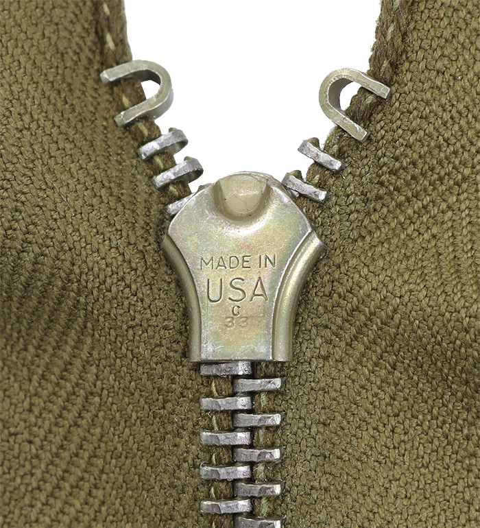 注) 1942年発令されたThe List of Critical Items(戦時欠乏品リスト)に銅、ニッケルが含まれたため、多くのジッパーメーカーは代用品として『鉄、亜鉛を主とした合金』をジッパーの素材として使用し、これらのジッパーは総称して戦時型ジッパーと呼ばれる。