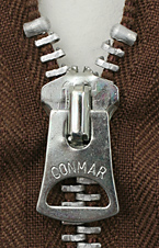 50年代、60年代におけるUSミリタリィ衣料において、最も多く見られるZipper メーカーCONMAR社の#5, アルミ・Zipper。