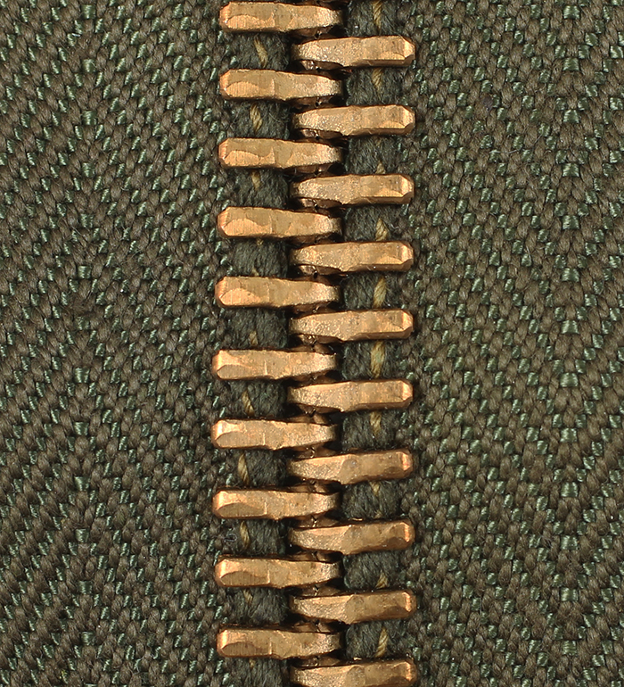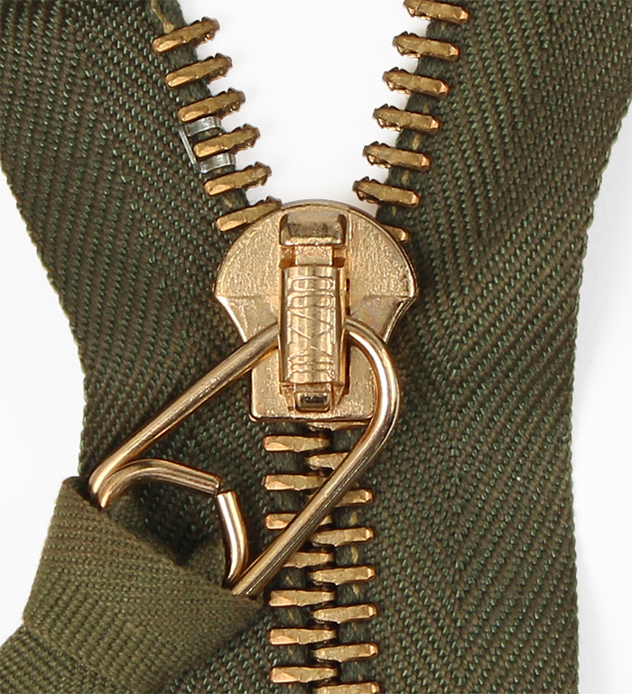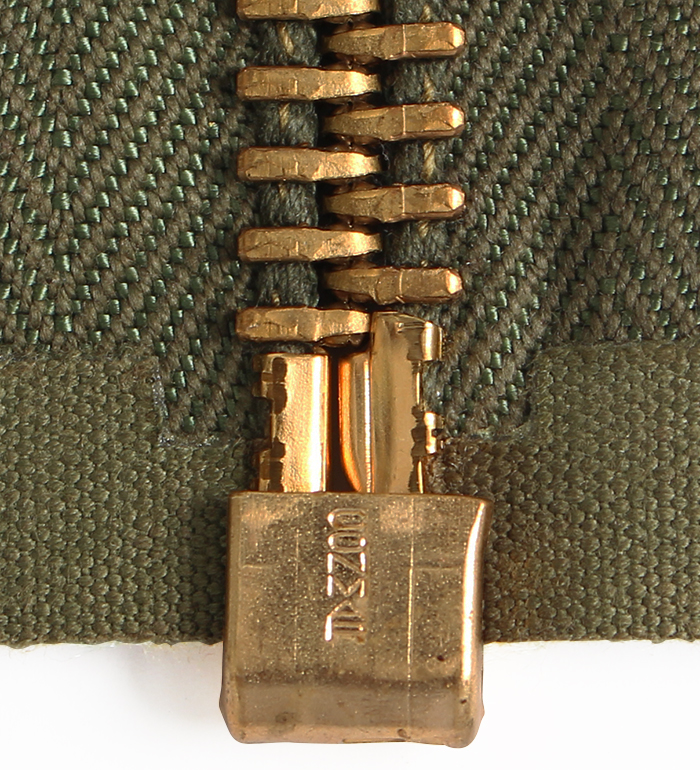 オリーブ系フライトトラウザーズのジッパー修理に限らず、75cm以内なら各種ミリタリー衣料のフロント修理に使用可能な長尺ジッパーだ。