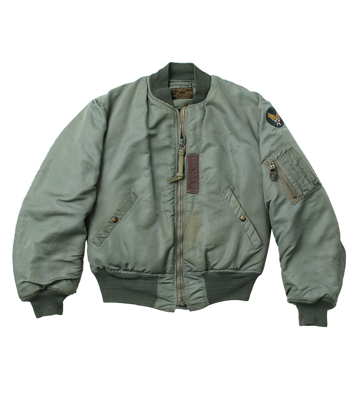 50〜60年代初頭にかけ、USAFにおいて支給されたB-15D、初期のMA-1, L-2B...等に使用された、若干グリーンがかったダークセージ色、編み仕様を再現。袖口、腰回り共に交換される方のため同じ製造ロットで組んだニット2点セット、M.O.C.(MASH)復刻品。