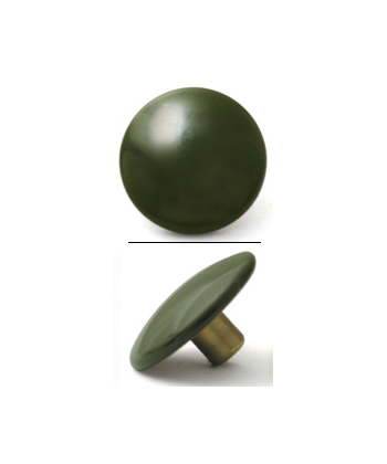 Capトップがオリーブ色にペイントされたドットボタン(15.24mm)は40年代半ばから1950年頃までに支給されたUS AAF, USAFのフライト衣料に多く用いられました。販売セット内容は当時の実物に最も多く見られオリーブ色を再現、焼き付け塗装したキャップ(真鍮製)とニッケル・シルバー仕上げされた3種のパーツ(真鍮製)の組み合わせです。製造メーカーは、USAにおいて現在この種のパーツの代表的な製造納入メーカーであるScovill 社です。