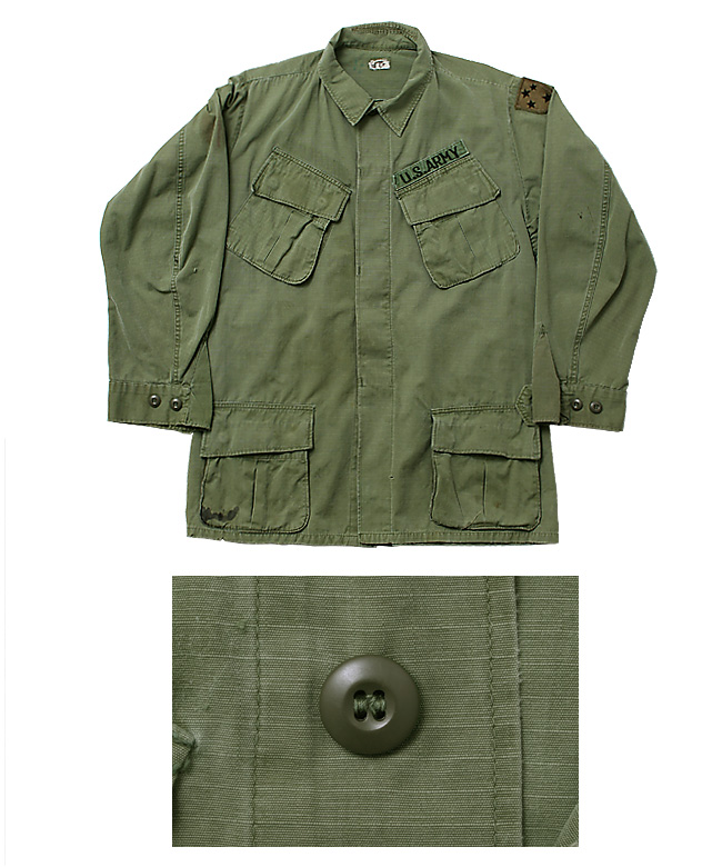 注)1963-65年の間に支給されたジャングル ファティーグ初期、中期モデルには形状は同じだが表面に艶のあるボタンが多く使用された。紹介の『BDUボタン』は1966年以降支給の物に使用された『艶なし』タイプである。