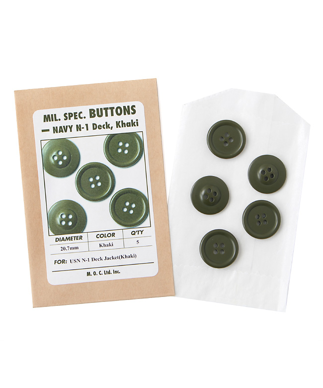 M.O.C.復刻 N-1/カーキ用ボタン(尿素樹脂)20.7mm、Khaki、5個セット/新品(復刻品)