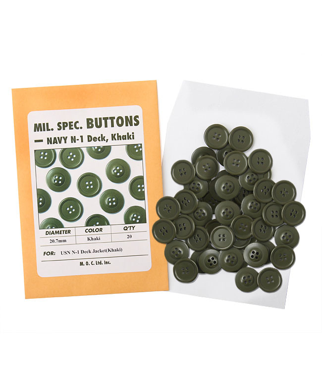 M.O.C.復刻 N-1/カーキ用ボタン(尿素樹脂)20.7mm、Khaki、20個セット(徳用・業務用)/新品(復刻品)