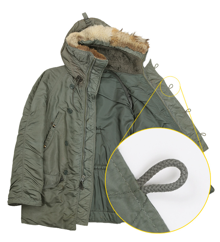 ■主な用途:N-2B ジャケット、N-3B ジャケット/パーカーの腰紐、ボタン用ループ、フード用. . . . .。>画像参照