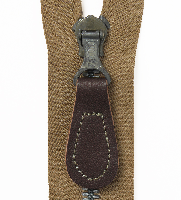 【 CROWN 袖ポケ用ジッパー(タン色)/革タブ付き 】