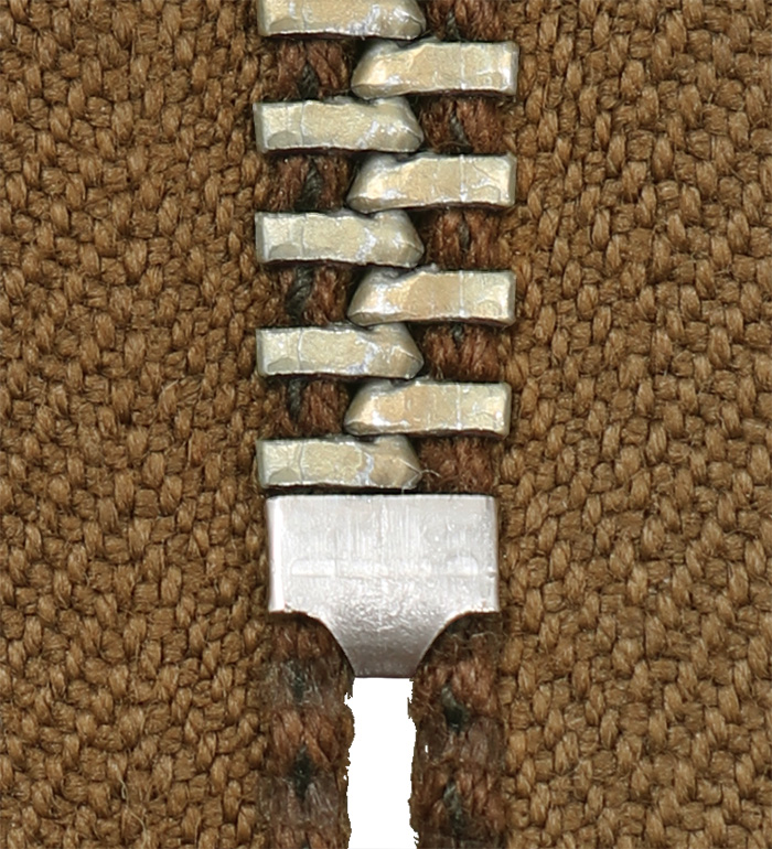 ジッパーの主要素材である真鍮と洋白は、1942年に戦時重要物品に指定され、ほとんどのジッパーメーカーは鉄と亜鉛を主成分とする合金製ジッパーへの切り替えを余儀なくされた。 これらのジッパーを総称し戦時型ジッパーと呼ばれる。