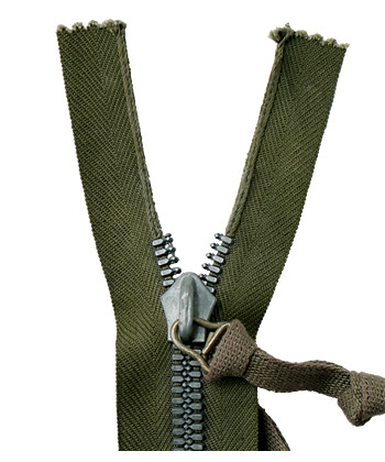 Crown 2nd Model Non-Separating Zipper, #10, Double Sliders(布ストラップ), Olive Green Tape, 65cm/実物・未使用