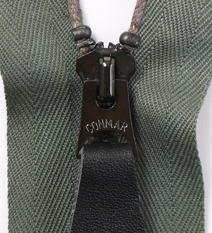 Conmar, M53, #5, Black Teeth, クローズドエンド Zipper、セージグリーン色テープ、革タグ付(三角ステッチ)、62cm/実物・未使用