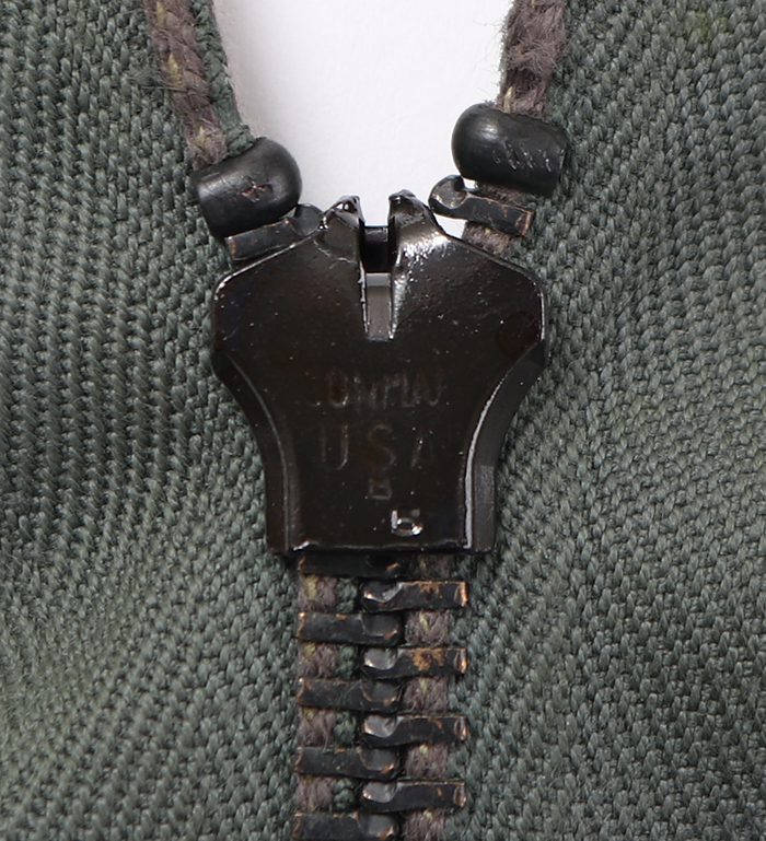 1953-78年採用N-2B(セージグリーン色)、Hood用 Conmar Zipper。セージグリーン色テープ、Black Teeth、M53 Conmar Slider(革タグ付)、実物・未使用! !