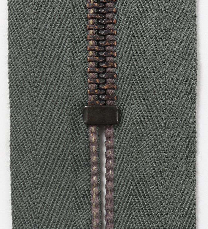 クローズドエンド Zipperの長さは上留上端から下留下端までを計測、上下に約1インチ(2.5cm)のテープ余りありです。