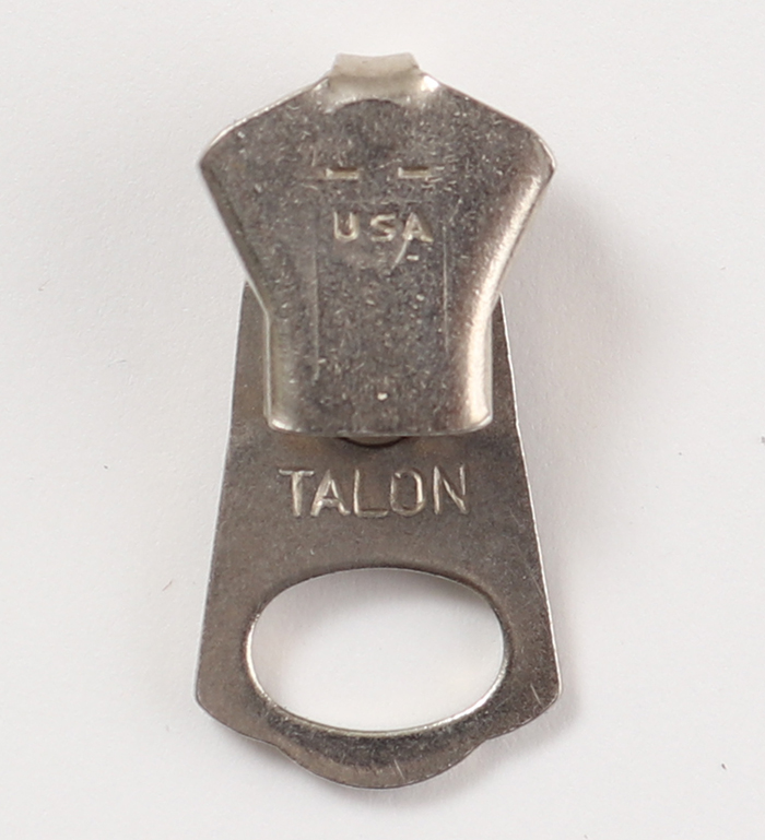 1945年5月、戦時統制が解除された直後から製造が開始された戦後型Talon M45 Slider。戦前同様ブラス(真鍮)が用いられ、引き手の穴の形状が半月型から楕円形にモデルチェンジされた。ニッケル仕上、実物・未使用 ! !