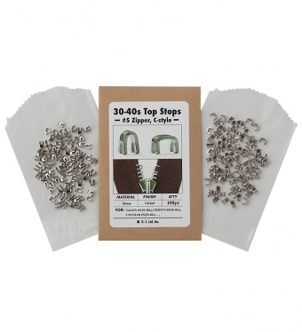 US 30-40s C型 Top Stops(上止め) No.5 Zipper用、ニッケル仕上げ(真鍮)、左右30組セット(徳用)/M.O.C.復刻・新品