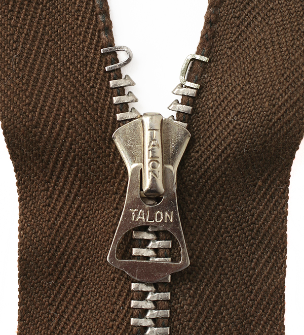 を、TALON M39実物デッドに使用されていた『Top Stops(上止め)』から完全復刻。TALON社は開発時から1946年頃後継の簡略型に移行する迄の間、C型の形状、止め仕様に一切の変更を加えること無く、また他のUS Zipメーカーに関しても、その殆どは同型又は類型の『C型 Top Stops(上止め)』を使用した。