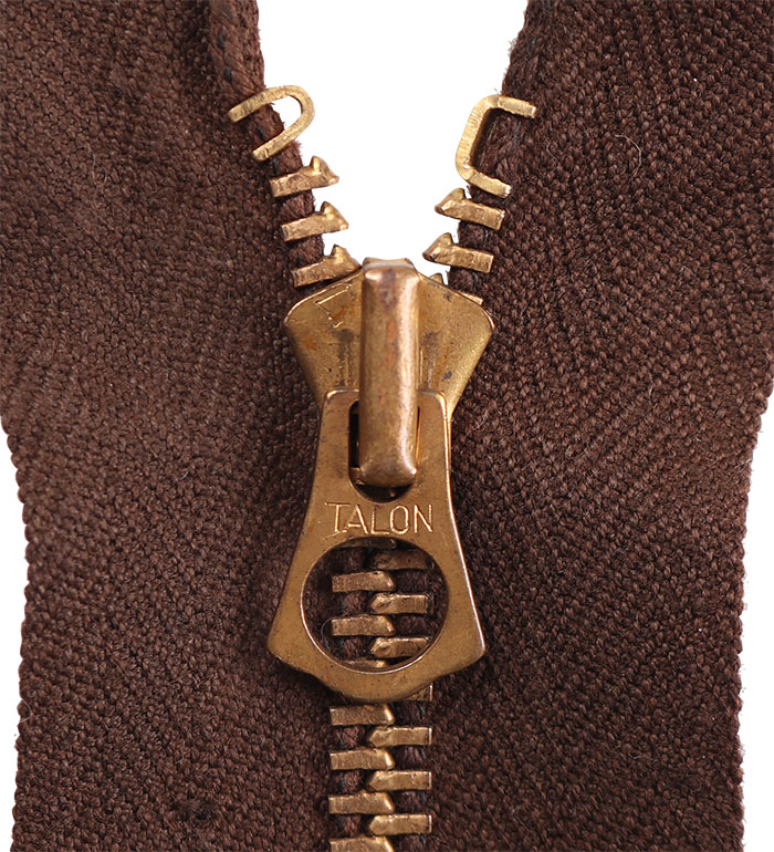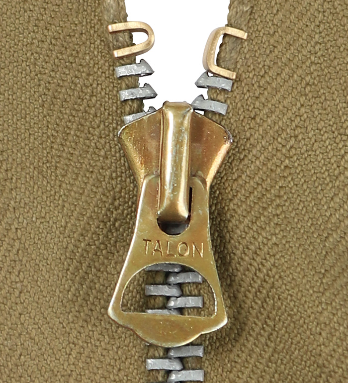 を、TALON M39実物デッドに使用されていた『Top Stops(上止め)』から完全復刻。TALON社は開発時から1946年頃後継の簡略型に移行する迄の間、C型の形状、止め仕様に一切の変更を加えること無く、また他のUS Zipメーカーに関しても、その殆どは同型又は類型の『C型 Top Stops(上止め)』を使用した。