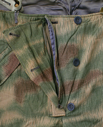WWII、ドイツ軍において冬期戦闘用として開発支給された、ウォーターパターン迷彩パンツ、陸軍(WH)及び空軍(LW)共に同型の物が使用されていたようだ。実物・極上。