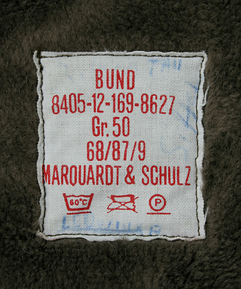 ドイツの連邦国境警備隊(BGS)で使用されている軍(ドイツ連邦軍)のパルカより丈が若干長めのグリーンパルカ、ライナー付き。腕に、BGSのパッチ(TAB&アドラー章付)。実物・極上。