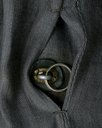 ■裾:ドットボタンとレザーストラップで調節可能タイプ。