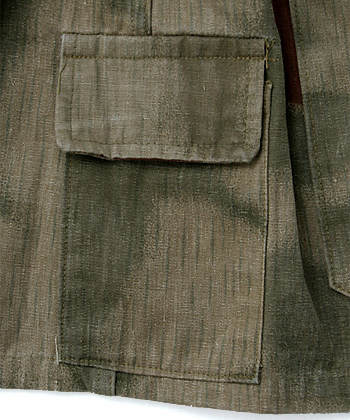WWII終了後、再編されたBW(ドイツ連邦軍)の衣料、装備から大旨、大戦色が一掃されたのに比較し、編成時のBGS(ドイツ連邦国境警備隊)の衣料、装備においては、ここまでと思われる程、大戦時への類似性が色濃く残された。紹介する『ウォーターカモ・スモック』もその1つである。摘発を逃れBGSに採用されたSS隊員達が好んで着用したという説もある。実物・極上、1点物、コレクターズ・アイテム!!