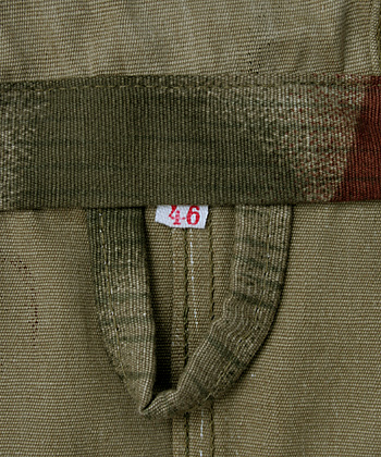 WWII終了後、再編されたBW(ドイツ連邦軍)の衣料、装備から大旨、大戦色が一掃されたのに比較し、編成時のBGS(ドイツ連邦国境警備隊)の衣料、装備においては、ここまでと思われる程、大戦時への類似性が色濃く残された。紹介する『ウォーターカモ・スモック』もその1つである。摘発を逃れBGSに採用されたSS隊員達が好んで着用したという説もある。実物・未使用デッドストック品、1点物、コレクターズ・アイテム!!