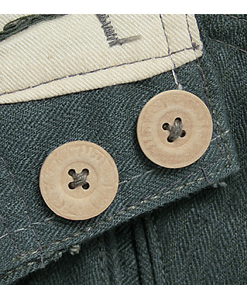 ■ボタン(16.4mm径):フロント x 4、右ヒップポケット x 1、ウェスト内サスペンダー用 x 2