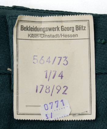 ドイツ BGS(国境警備隊) 初期型 制服用ウール(トリコット織地)パンツ/納入時ペーパー・タグ付/実物・未使用