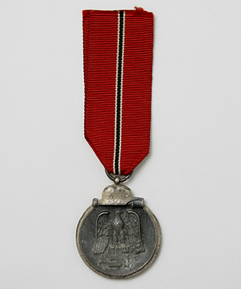 希少な大戦ドイツ軍、実物徽章の中にあって、戦場又は軍務で実際に使用された良の上クラスの実物冬季東部戦線従軍メダルの紹介です。使用感ある実物衣料への使用には最適。製造され約70年を経過した実物です。使用又はコレクションに差し支えない範囲においての変色、若干の汚れ、虫食い等がある事、予めのご理解ご了承願います。