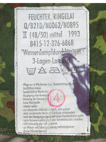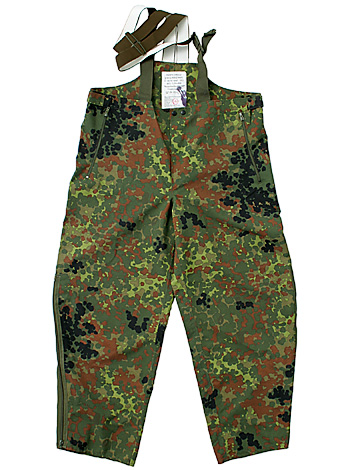 ドイツ連邦軍で90年代初頭より使用されているゴア系素材『SYMPATEX』(シンパテックス:当初採用のゴアテックス素材使用(OD色)に代わり本カモパーカーはドイツのメーカーであるSYMPATEX社(本社:Wuppertal)開発のSYMPATEX採用となりました。SYMPATEXもゴアテックス同様各種超薄フィルム状素材を三層(3レイヤー)に重ねた高い防水性、防風性、透湿性のある素材です。)使用のフレックカモ・ゴアパーカー上下セット。上下製造ロット違い品。実物準未使用放出品。