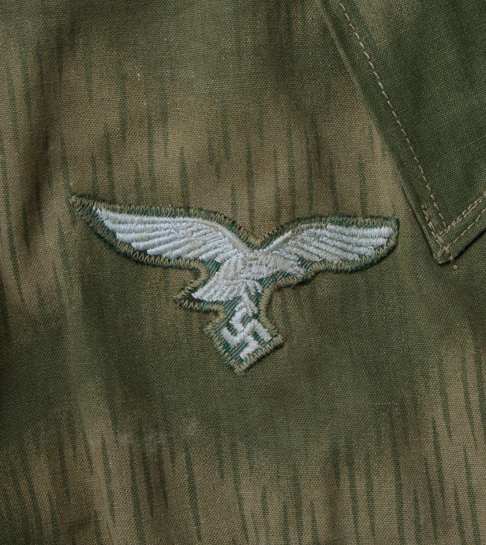 1941年頃より支給が開始されたとされる『ドイツ空軍 空挺スモック(海外では3rd Patternと呼ばれることもあり)』スプリンターパターン、ウオーターパターン、2種のカモパターンの物が存在し、紹介はウオーターパターンの物である。希少な大戦ドイツ軍戦闘服の中にあっても、その希少度はトップクラスであり、生涯に一度おめにかかるかどうかのヘビーコレクターズアイテムである。