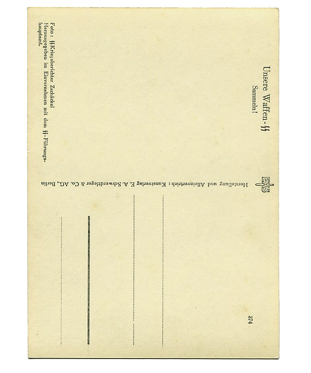 長年に渡り世界中からコレクトした大戦ドイツ軍関連資料。紹介は“Waffen-SS”(武装親衛隊)の訓練、活動姿が印刷された実物ポストカード、全て1点もの。お見逃しのないように! !