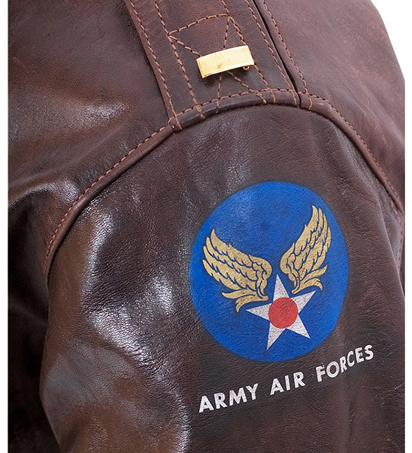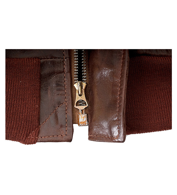 注)セミアニリン仕上げ:鞣し工程で仕上げ色に近い染料で革染め後ピグメント(顔料)で仕上げる、大戦時のA-2において最も多く見られる革仕上げ。 |