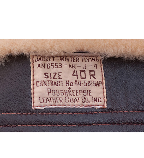 | 1943年5月17日、B-3の後継モデルとして採用された『AN-J-4』は、多くのパイロットから寄せられた『B-3』における改良点を設計に反映させ完成された革飛行服であったが、飛行機という乗り物における暖房設備の改善、供給量に限りがある革製品の継続使用が困難である事などから、2年間の支給を経て『AN-J-4』はシープシアリング・フライトジャケットの最終モデルとしての役目を終える。世界に先駆け1989年『AN-J-4』の復刻作品をリリースしたイーストマン社は、ポケットフラップをドットボタンで留める『Version 1』、ボタン留め型式の『Version 2』に続き、Poughkeepsie Leather Coat Co.社製『Version 3』の販売を開始した。『Version 2』からの主な仕様変更は、着座した際裾まわりにゆとりを持たせるためジッパー下部取り付け位置を従来のものより約3インチ上げ、上げた部分をボタンで留める型式に変更されたこと、左胸に三角形の酸素マスク固定用革タブが追加されたこと、トリミング & レインフォースメント(補強)のための革をより柔軟なケープスキンに変更されたこと等が上げられる。 |