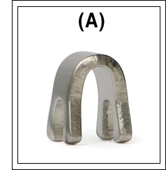 ニッパー、喰切り等で、Zip Teeth(務歯)を外し、右側(Box側)のジッパートップを左(ピン側)より1務歯高く仕上げた後、高く仕上げた右側(Box側)の『務歯』外し跡に上止(A)の足を差し込み、曲がりを調整した後、先幅が5-10mmのペンチで前側から軽くプレスし仮止め、次に後ろ側からテープを痛めない程度にプレスし固定して下さい。プレスする際トップの『務歯』と共にプレスするとテープを痛めず上止めを固定できます。