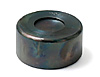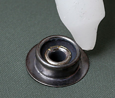 “Cap”の足を1)で開けた穴に通し、“Cap”の頭を専用受け皿の表(Cap面のカーブが彫り込まれた方)にセットする。 |