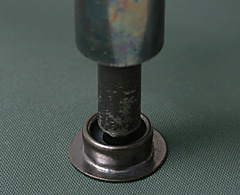 打ち棒による取り付けでの利点は手軽に作業を行える点にあります。欠点は打ち棒を垂直に立て上からハンマーでプレスする際、その角度、力加減での失敗もある程度考慮に入れなければなりません。幾つか練習してから実際の取り付けにあたりましょう。 |
