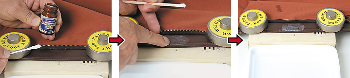 | >>貼り付けた“AAF Decal 革用”の除去、及び除去後の革面の修正 |