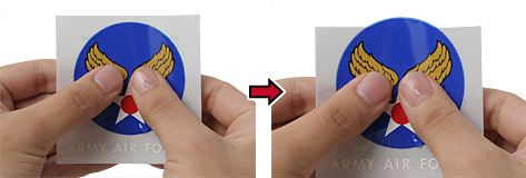 | 8)デカールを剥離させながら貼り付け面に置く | ||||