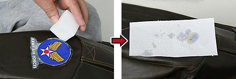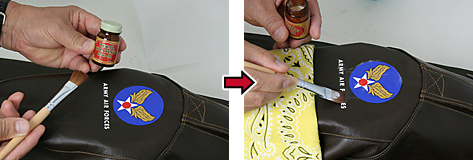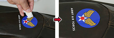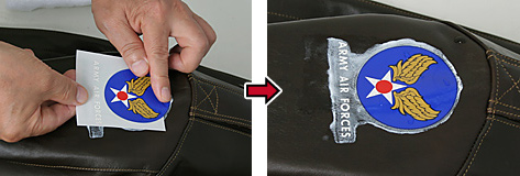 | >>貼り付けた“AAF Decal 革用”の除去、及び除去後の革面の修正 |