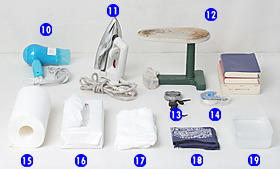 貼り付け対象面の下に小型アイロン台、板、厚手の固い本等を下敷き、出来るだけピンと張り、平らに固定して下さい。 |