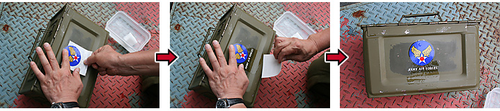 | 4)デカールと貼り付け面の間の空気・水の除去 |