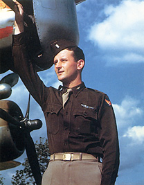 1944年、イギリス、HORHAM基地にて B-17G の前でポーズをとる。AAFパイロット 1st Lt. GEORGE DANCISIN。