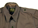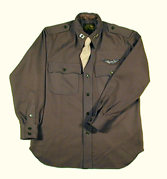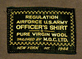 “THE WAR LOVER”でスティーブ・マックィーンが“TWELVE O' CLOCK HIGH”でグレゴリー・ペックが…オフィサーズシャツの第2ボタンと第3ボタンの間にタイを差し込んだ小粋な姿は、実にパイロット的でありヤンキーでありました。 WWII時、AAFの将校であるパイロット達がウィンター用に主として使用したダークブラウンのウ?ルシャツは一般のアーミーオフィサーズシャツとは細部において、異なった仕様を持ち、特に多くのAAF将校がテイラーメイドと呼ばれるチョコレ?ト色のウールギャバジンを用いたオーダーメイド品を好み着用した事から、日本ではこのシャツの事を以前からコレクター間で“チョコシャツ”と呼ばれ親しまれてきました。 復刻にあたっては、チョコレート色のウールギャバジン、ミリタリィ色溢れる独特のフォルムはもとより当時のシャツ職人の業である実に手の込んだ細部仕様に至るまで完全に再現されての制作であります。