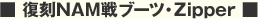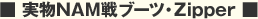 | NAM戦 ブーツZipper (9アイレット) \4,500/pr 使用可能ブーツサイズ:7 1/2 〜 12 (ジャングルブーツは別売) |