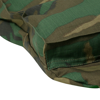 『US Army Engineer Research And Development Laboratory (米陸軍技術研究&開発研究所)』によって開発され、1967年末より支給が開始された米軍新型迷彩生地『ヴェトナム・リーフ(ERDL Camo)』。USAで発見した実物ERDL原反(1969年製)を用い復刻された『US NAVY Experimental Helmet Bag』。1966-67年、『US Navy Clothing & Textile Reserch Unit (米海軍被服研究所)』において開発、1970年米海軍特殊工作隊“SEALS”にテスト支給された『SEAL Jacket/Coat』と共に、『Sealsヘリ搭乗員』に支給されたという設定で復刻された『NAM戦ERDLカモ・ヘルメットバッグ』。限定数の製作です。 |